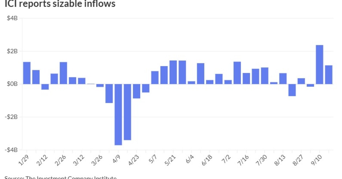 Municipal fund flows have remained strong in recent weeks. Inflows totaled $1.136 billion for the week ending Sept. 17, according to the Investment Company Institute. Exchange-traded funds saw inflows of $953 million for the same reporting period.