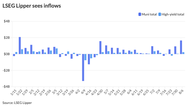 Investors added $1.656 billion to municipal bond mutual funds in the week ended Wednesday, following $937 million of inflows the prior week, according to LSEG Lipper data.