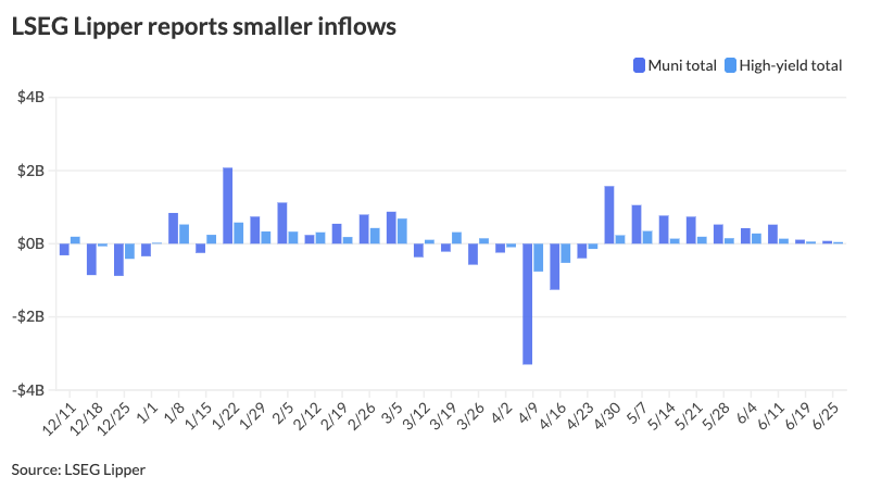 Investors added $76.9 million to municipal bond mutual funds in the week ended Wednesday, following $110 million of inflows the prior week, according to LSEG Lipper data.