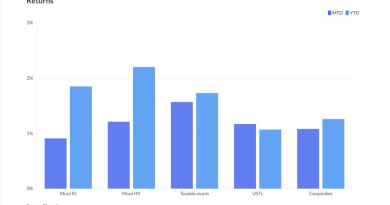 Investment-grade munis are seeing gains of 2.72% month-to-date and 3.05% year-to-date. High-yield munis are seeing positive returns of 3.02% MTD and 1.68% YTD. Taxable munis are up 1.64% MTD and 6.80% YTD.