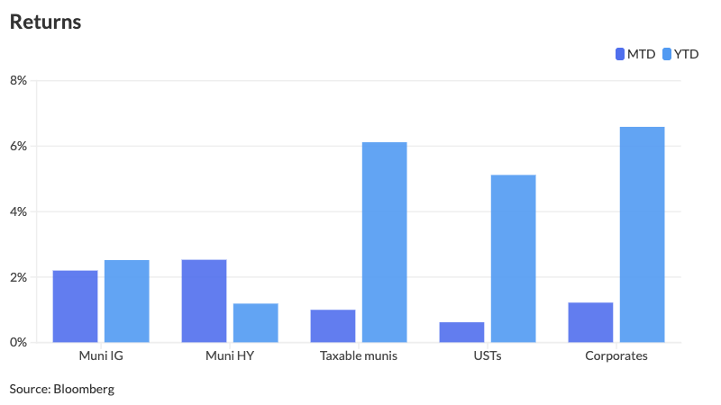 The front end saw the largest cuts “since hiring has slowed on the jobs front and GDP growing to 3.8% during Q2,” pushed UST yields higher and munis followed suit, said Jason Wong, vice president of municipals at AmeriVet Securities.