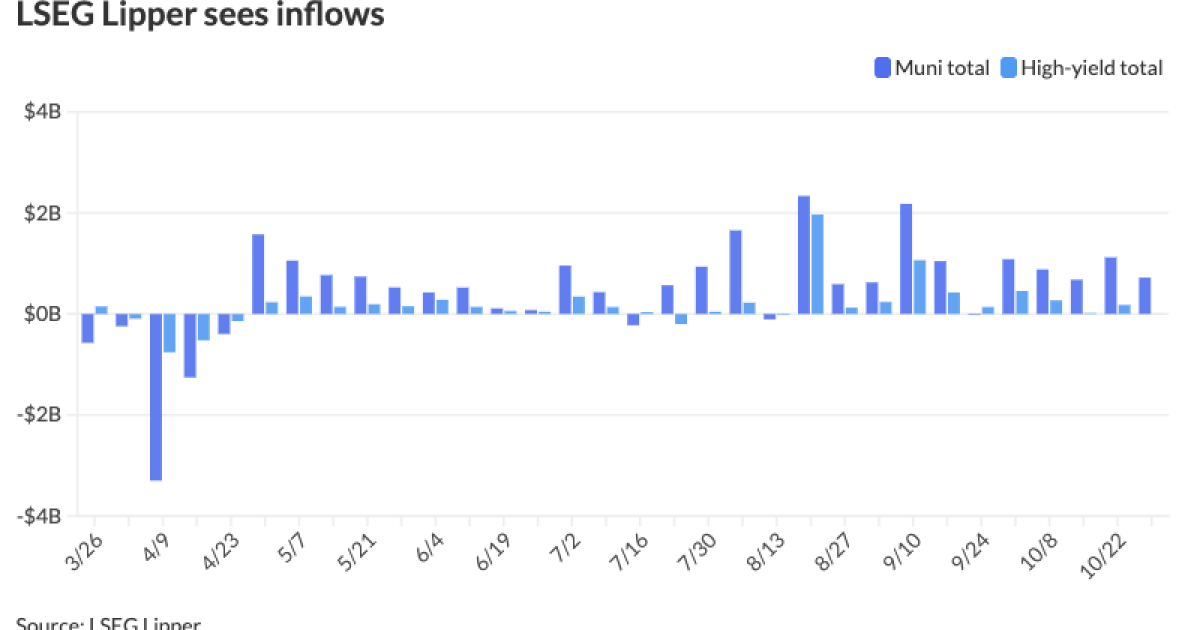 Investors added $719.9 million to municipal bond mutual funds in the week ended Wednesday, following $1.121 billion of inflows the prior week, according to LSEG Lipper data.