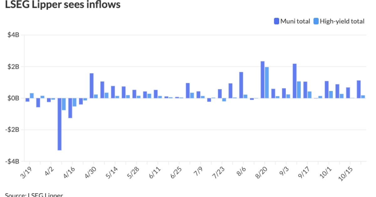 Investors added $1.123 billion to municipal bond mutual funds in the week ended Wednesday, following $678.1 million of inflows the prior week, according to LSEG Lipper data.