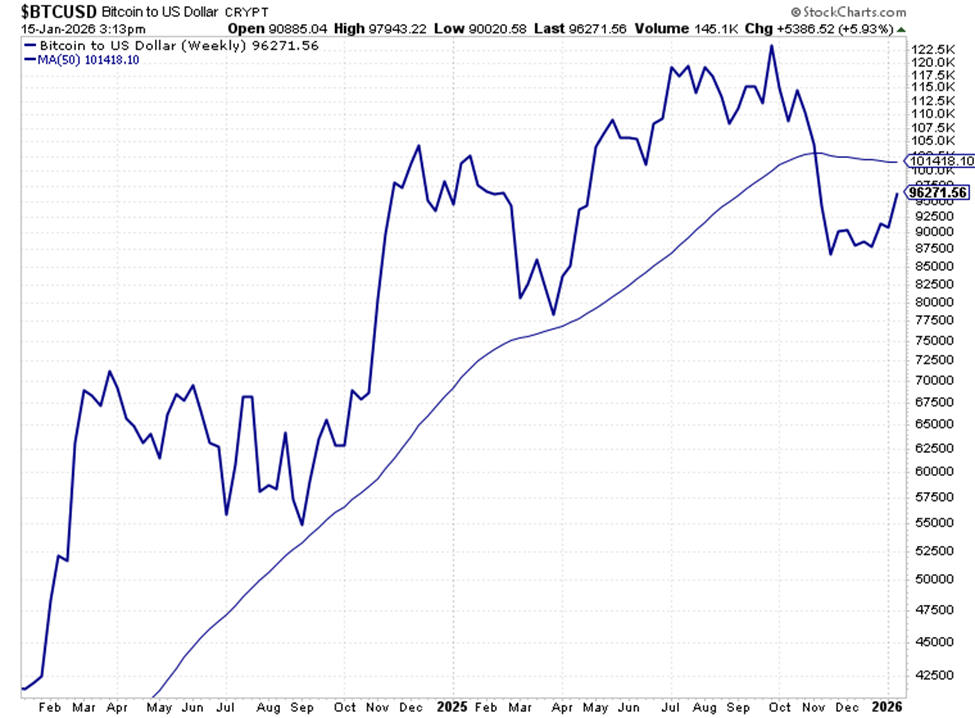 Bitcoin is approaching its 50-week moving average… a return of the bull, or a new crypto winter?… silver exploded as we predicted – but is gold your better horse today?… what historical data says about trading gold right now